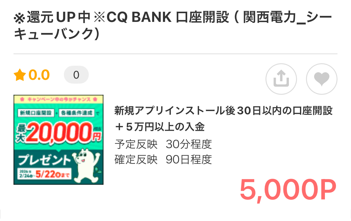 特にCQBANKみたいな口座開設案件は、一度やってみると”これは本当にもらえるんだ”という実感がわきます。手順さえ間違えなければ確実にポイントが入ってくる。