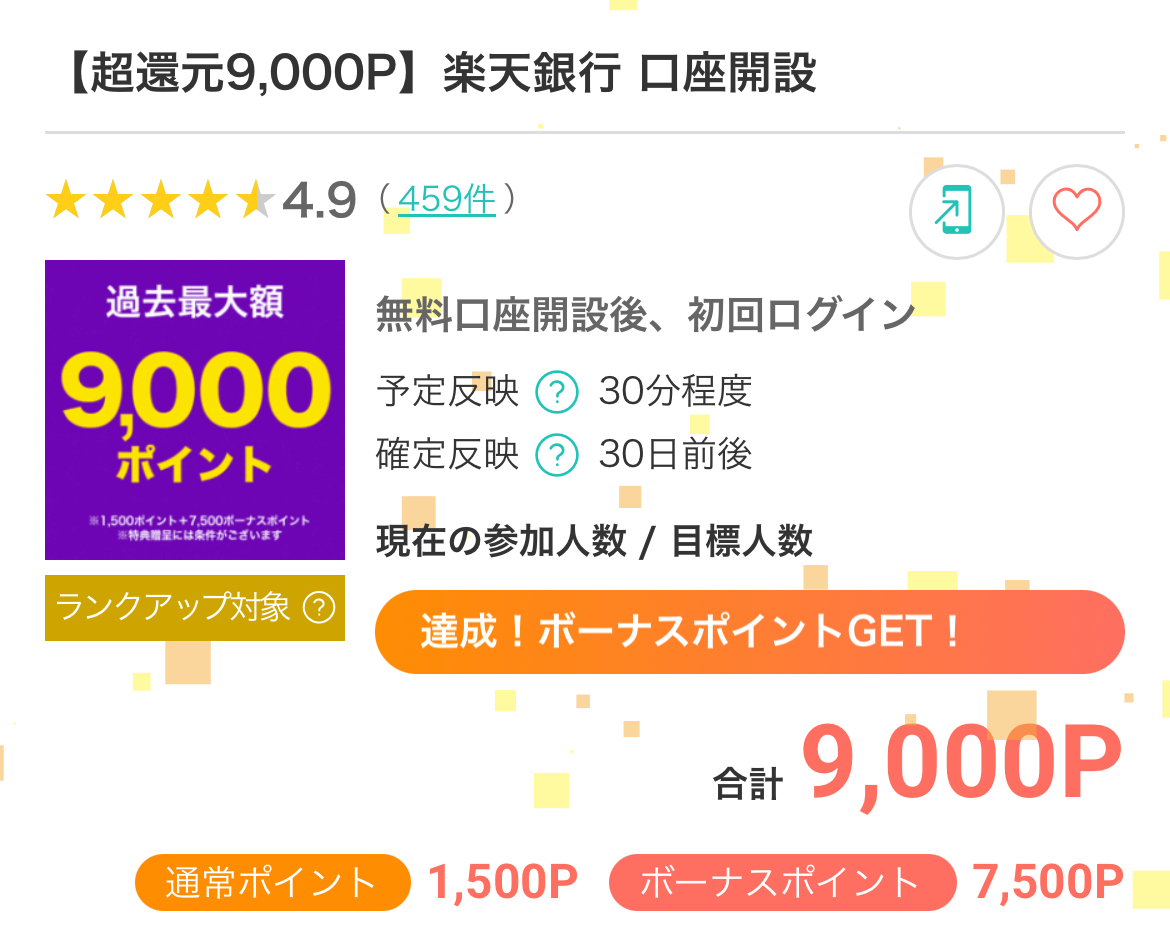- 報酬9,000円相当(9,000pt)※過去最高水準