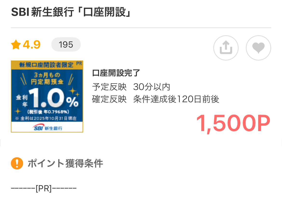 - ✅ 条件:SBI新生銀行の口座開設完了のみ